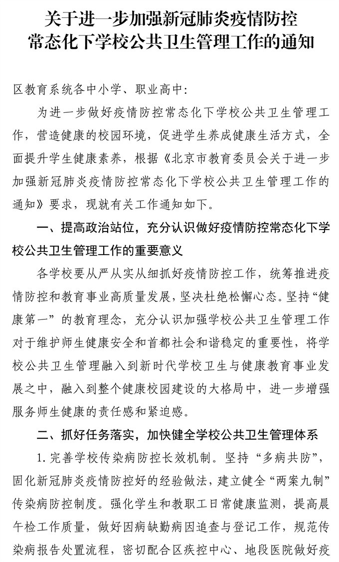 加强学校公共卫生管理工作的通知