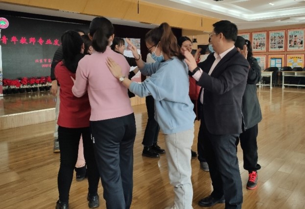 破冰环节通过互相按摩肩膀、拍打背部,进一步放松身体,同时增强老师之间的亲近感,气氛更加融洽。“两只小蜜蜂,飞在花丛中,飞呀,蜇呀”,听到“蜇”字的时候一只手抓,另一只手逃,活动紧紧抓住了大家的注意力,同时也锻炼了注意的分配能力和反应的敏捷度,游戏中大家更放松也更投入,快乐在悄悄流动。